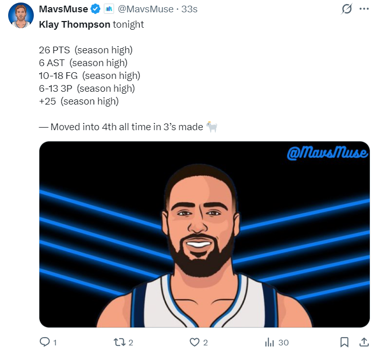 这场比赛克莱还创造五项赛季新高:得分、助攻、运动战进球、三分命中数、正负值,这位35岁的老将里程碑之夜太闪耀了。