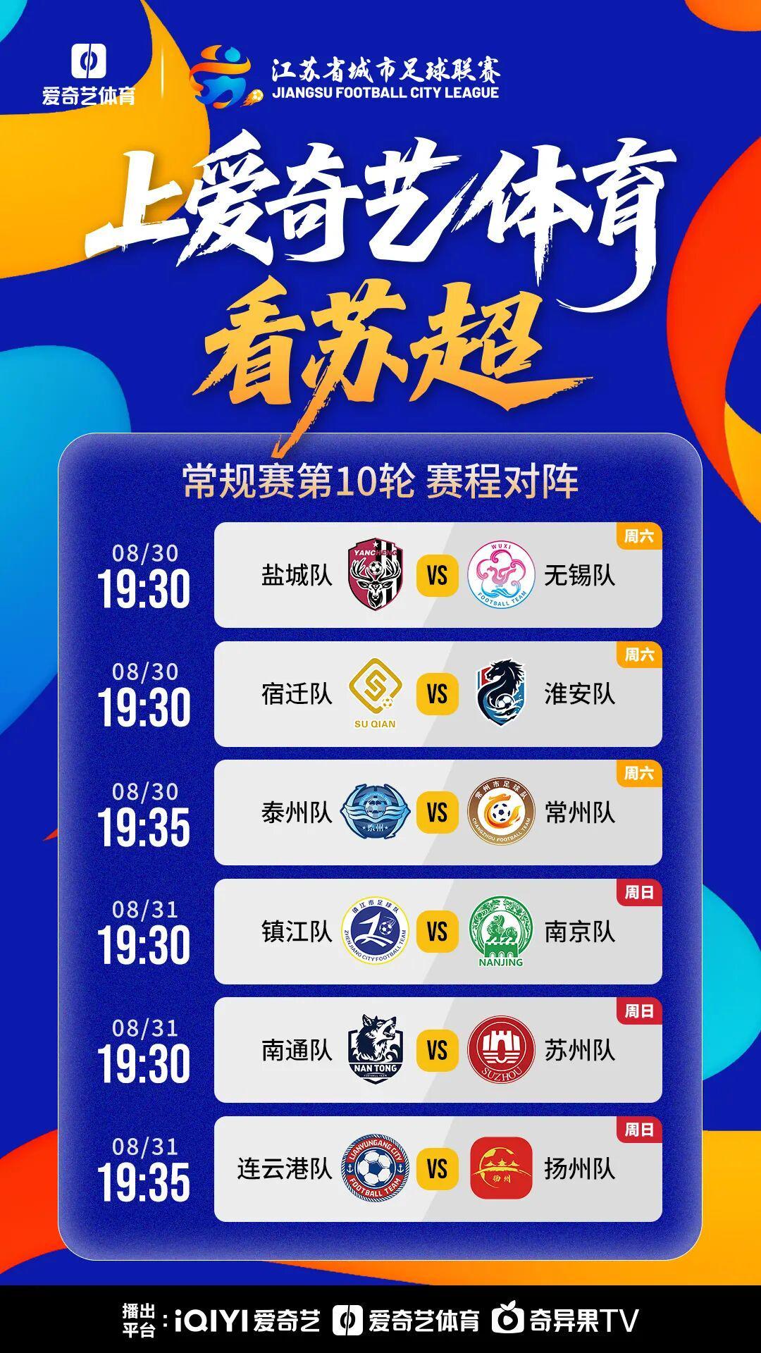 8月30日晚,“苏超”第10轮对决火热来袭,这轮比赛又将有哪些看点?爱奇艺体育继续直播6场对决。
