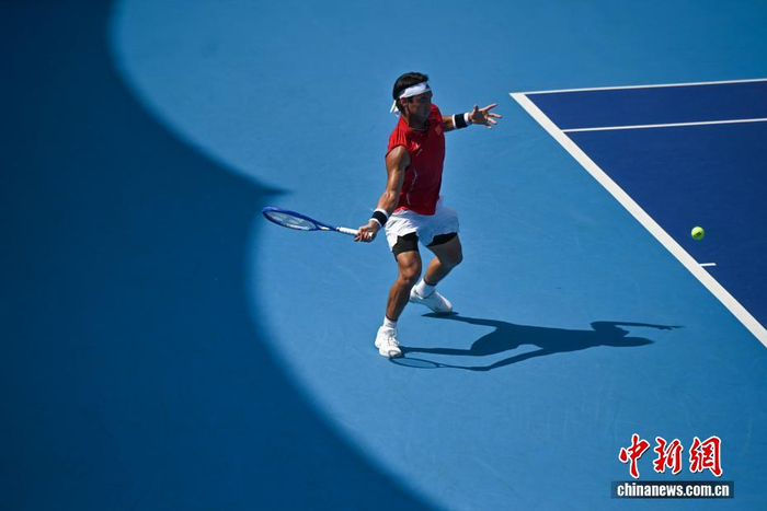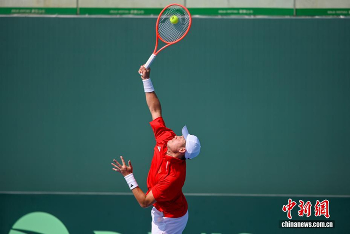 2月6日,为期两天的2026年戴维斯杯世界Ⅰ组附加赛在广州南沙开赛。中国队派出布云朝克特、吴易昺、周意、商竣程、张之臻在内的阵容主场对阵葡萄牙队。图为葡萄牙队亨里克·罗沙在比赛中。中新社记者 陈骥旻 摄