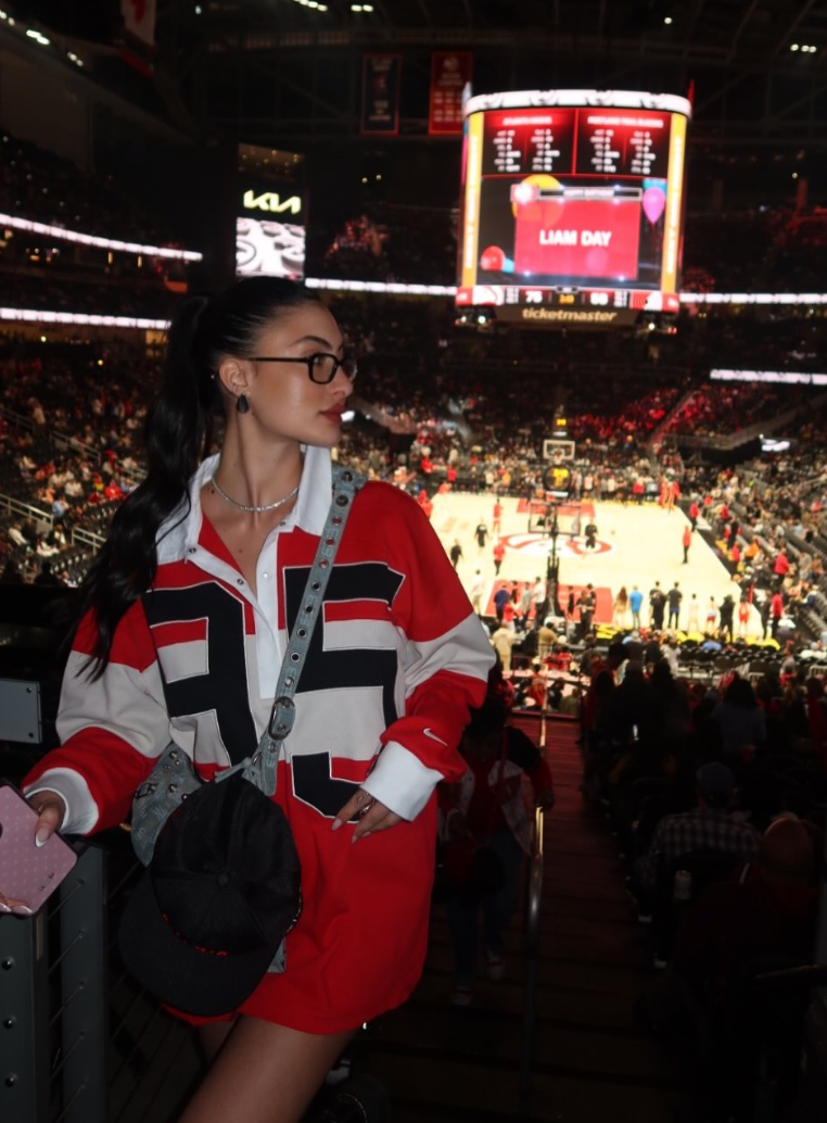 北京时间3月5日,在此前亚特兰大老鹰以135-101大胜波特兰开拓者的比赛中,一位美女球迷来到现场看球。这位美女球迷名叫Linoy,是一位网红模特,在社交媒体上经常晒出自己到处旅游的美照。