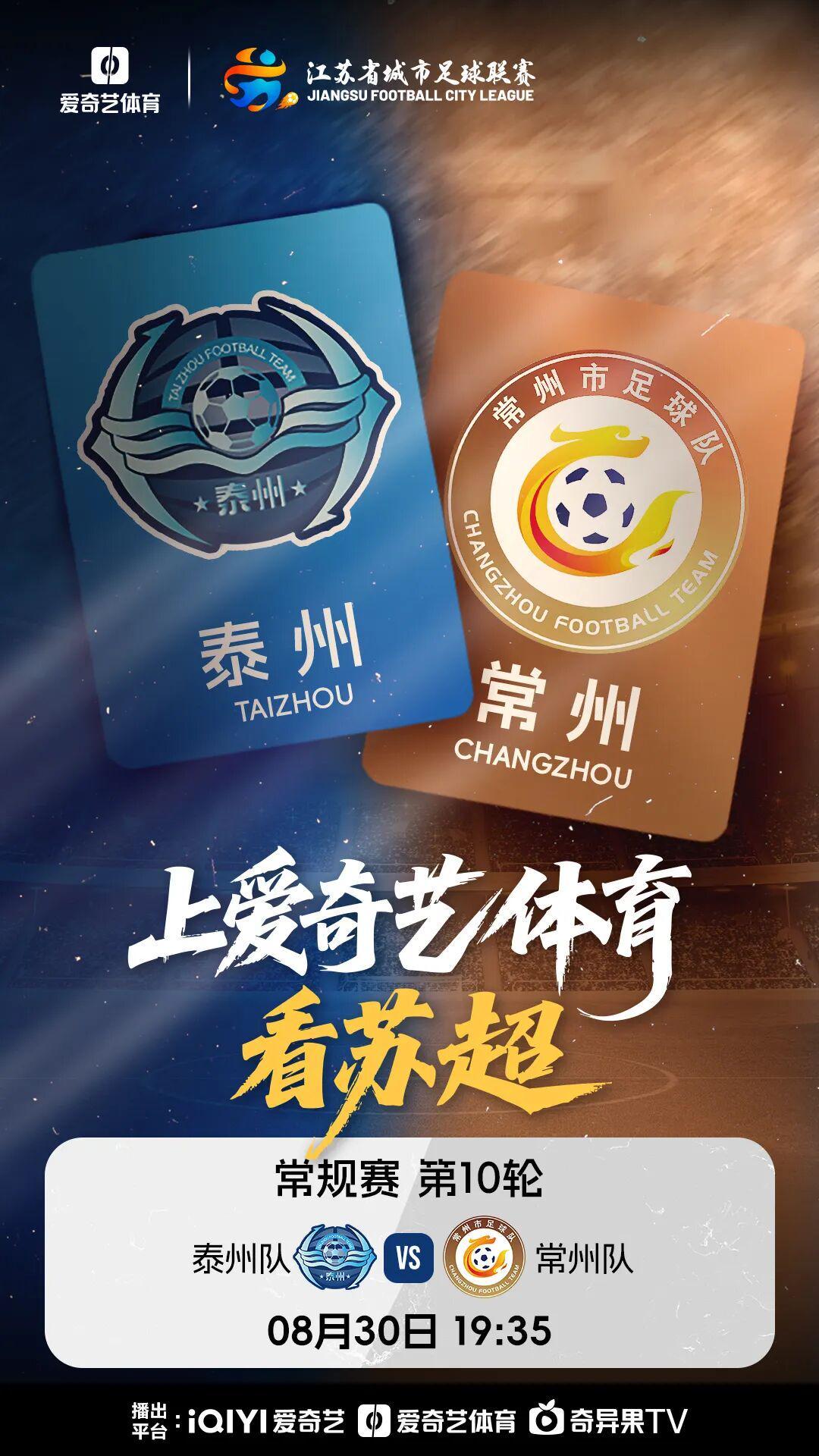 8月30日19:30 泰州队vs常州队