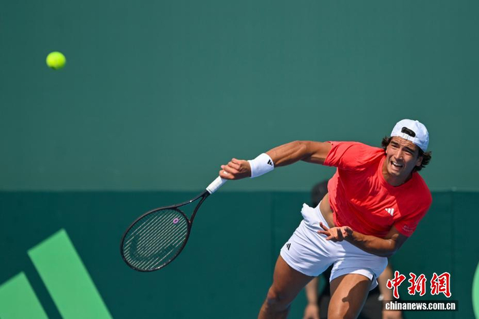 2月6日,为期两天的2026年戴维斯杯世界Ⅰ组附加赛在广州南沙开赛。中国队派出布云朝克特、吴易昺、周意、商竣程、张之臻在内的阵容主场对阵葡萄牙队。图为葡萄牙队亨里克·罗沙在比赛中。中新社记者 陈骥旻 摄